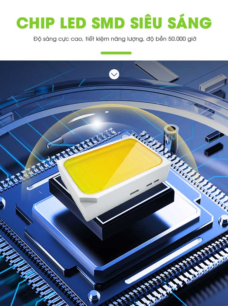 Công suất 200W, ánh sáng trắng mạnh, chiếu xa